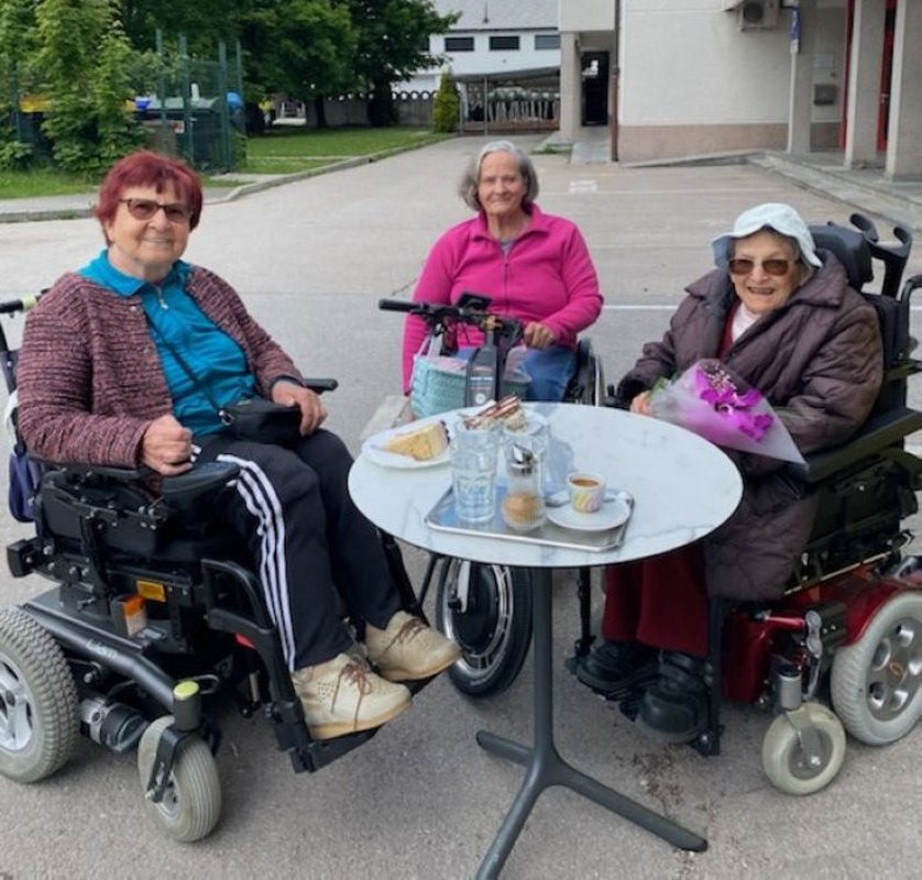 V nedeljo, 25. maja 2025 je praznovala 80. rojstni dan naša članica Jerca Dahu. Ob tej posebni priložnosti sta jo v Kamniku obiskali članici Društva paraplegikov, Draga Lapornik in Matilda Šalamun, ki sta ji pripravili prisrčno presenečenje s šopkom rož.