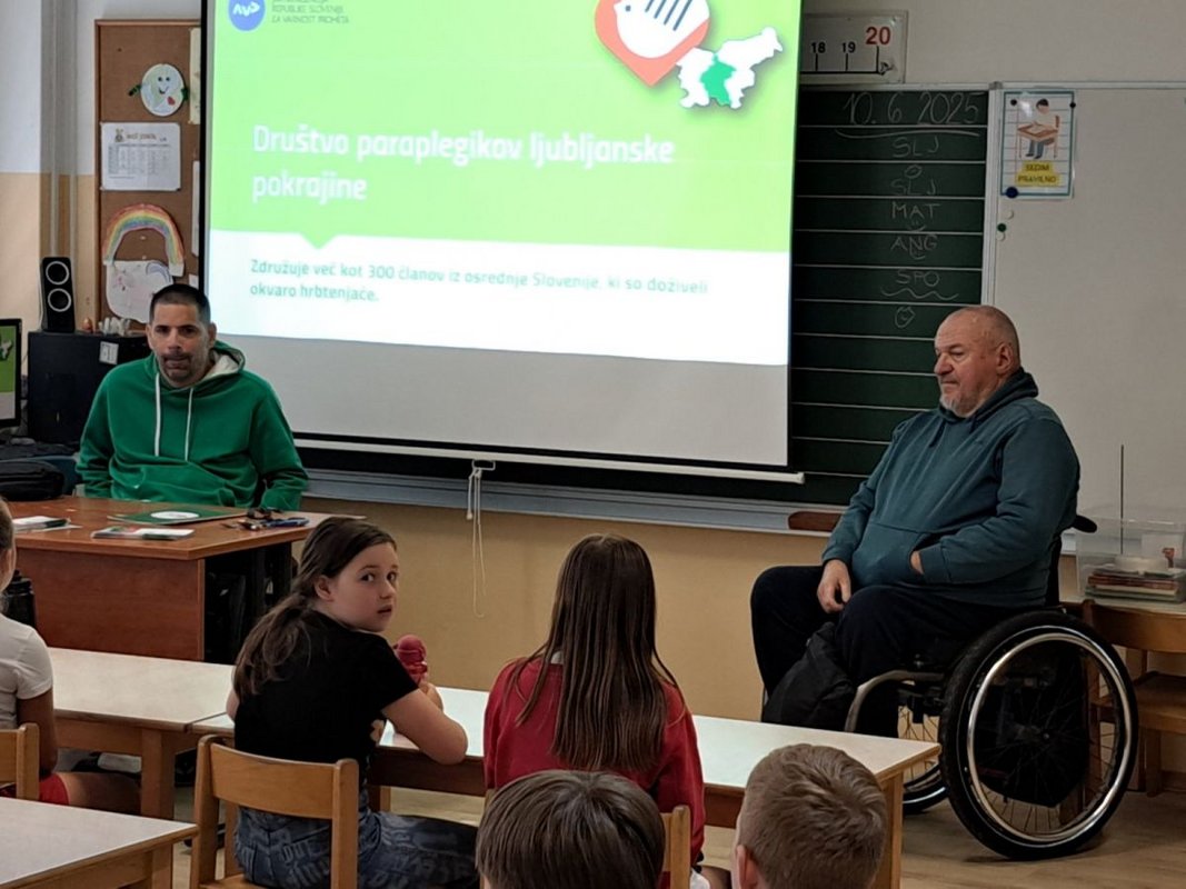 Prvo od štirih delavnic smo tako prvič izvedli 10. junija 2025 na OŠ Komenda-Moste, podružnica Moste. Tretjim razredom smo pripravili predavanje o poškodbah hrbtenjače ter naše osebne zgodbe, v sklopu praktičnih delavnic pa so učenci lahko spoznali slikanje z usti, košarko na vozičkih in paranamizni tenis. Za tem so se z vozički lahko popeljali preko mobilnega poligona na katerem so se srečali z najpogostejšimi arhitekturnimi ovirami s katerimi se uporabniki invalidskega vozička dnevno srečujemo.