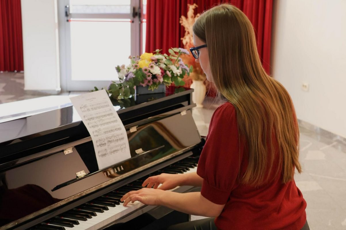 Za glasbeno spremljavo ob odprtju razstave sta poskrbeli učenki glasbene šole Gradus ad Parnassum Julija Oberstar in Rebeka Adamič.