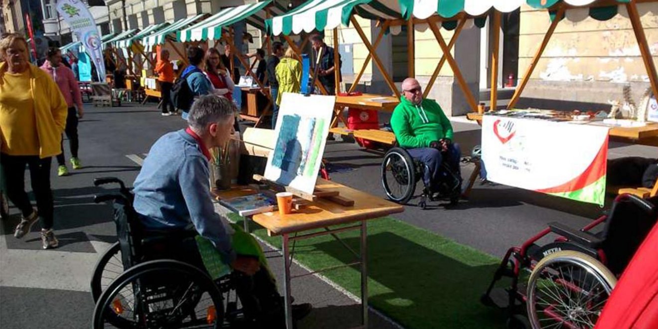 Imeli smo tudi invalidski voziček s katerim so se obiskovalci lahko zapeljali po umetni travi in spoznali kakšne preglavice nam povzročajo že najmanjše in neravne podlage. Tako kot vedno pa je posebno pozornost vzbujal naš slikar Željko Vertelj, ki zaradi težje gibalne oviranosti (tetraplegija), slikarski čopič drži lahko le z usti. Društvo sta zastopala še: Slavko Krajnc, Klavdija Furlan.