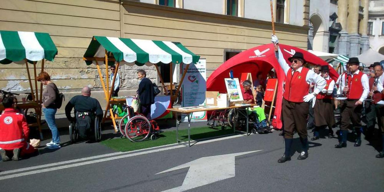 V lepem sončnem vremenu je bilo kljub nekoliko hladnem dopoldnevu na "Uličnem festivalu - Mestu brez avtomobila," precej živahno. Na naši stojnici smo številne mimoidoče seznanjali s poslanstvom društva, pokazali pa tudi različne manjše pripomočke, s katerimi težje gibalno ovirani člani, lažje premagujejo invalidnost.