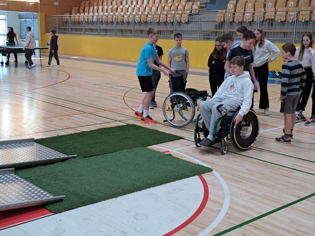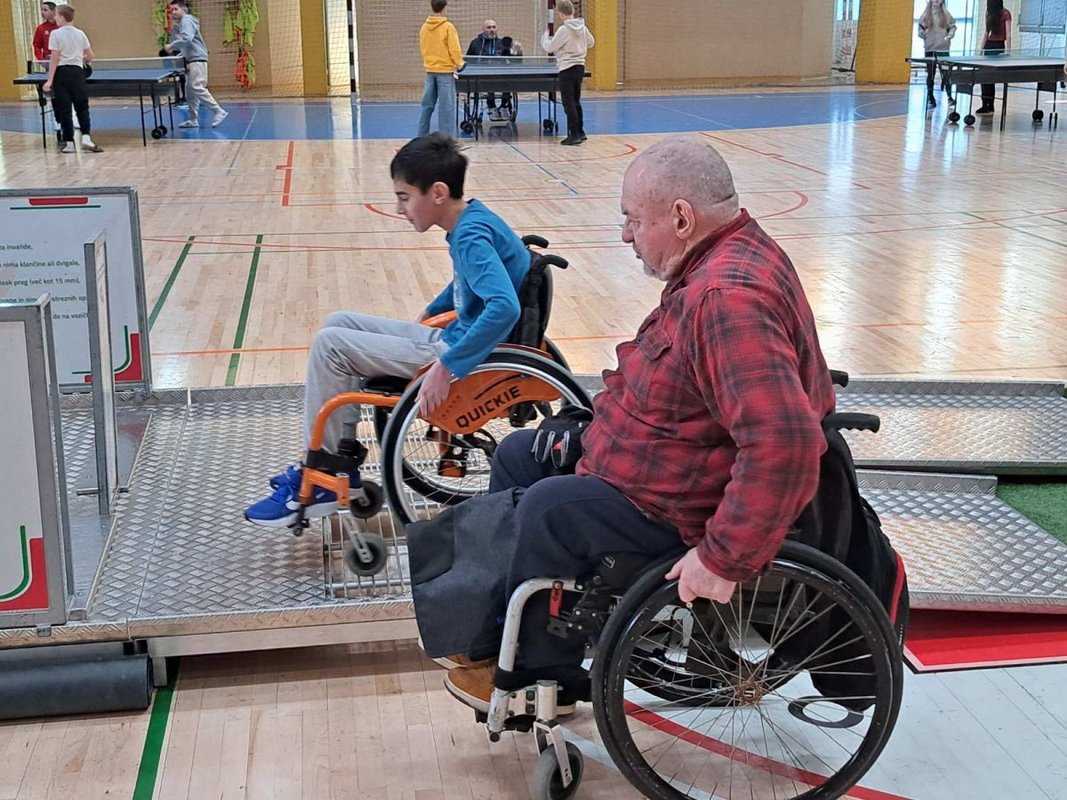 Tokrat smo se 18. marca 2025 odpravili na južni del ozemlja, ki ga pokriva naše Društvo, natančneje v Ribnico. Na OŠ dr. Franceta Prešerna smo naš program predstavili učencem sedmega razreda. Poleg predavanja so se učenci lahko preizkusili na poligonu z arhitekturnimi ovirami, košarki na vozičkih, paranamiznim tenisu ter si ogledali slikanje z usti.