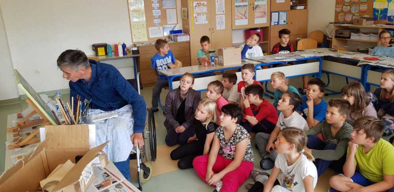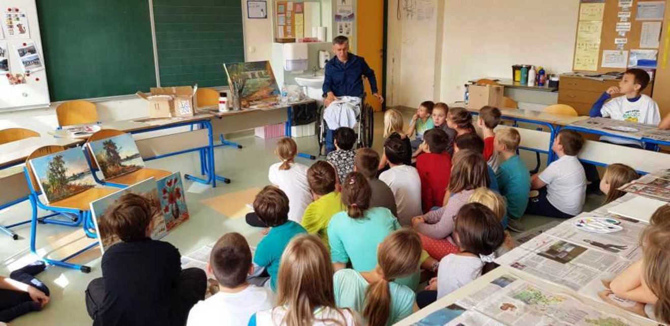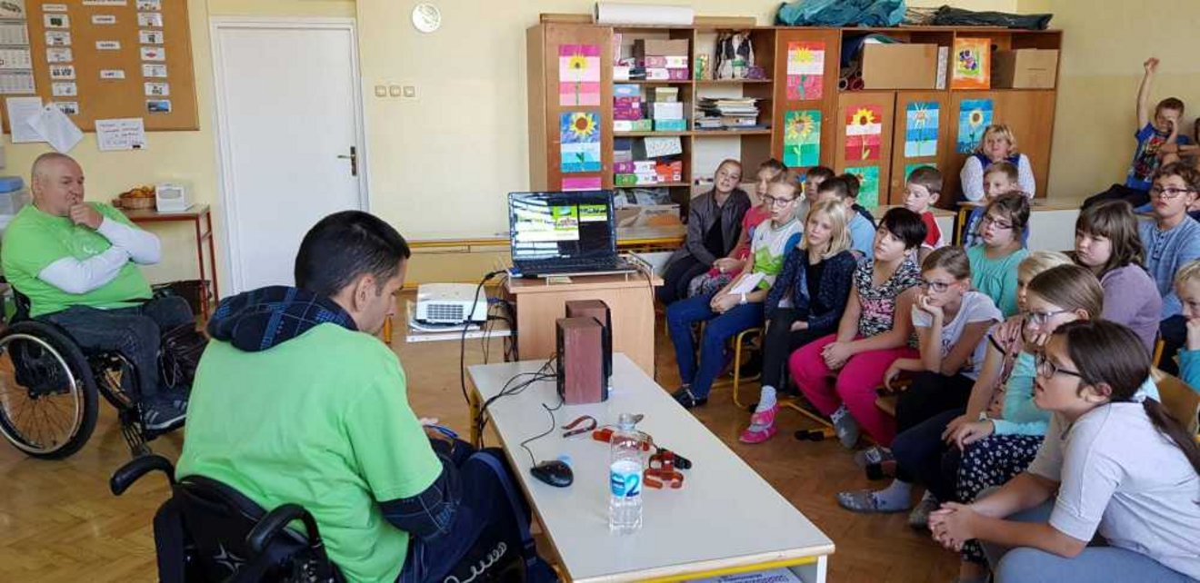 Član društva Žiga Bajde vsako leto obišče učence osnovne šole 27. junij v Kamniku in jim predstavi življenje na invalidskem vozičku.