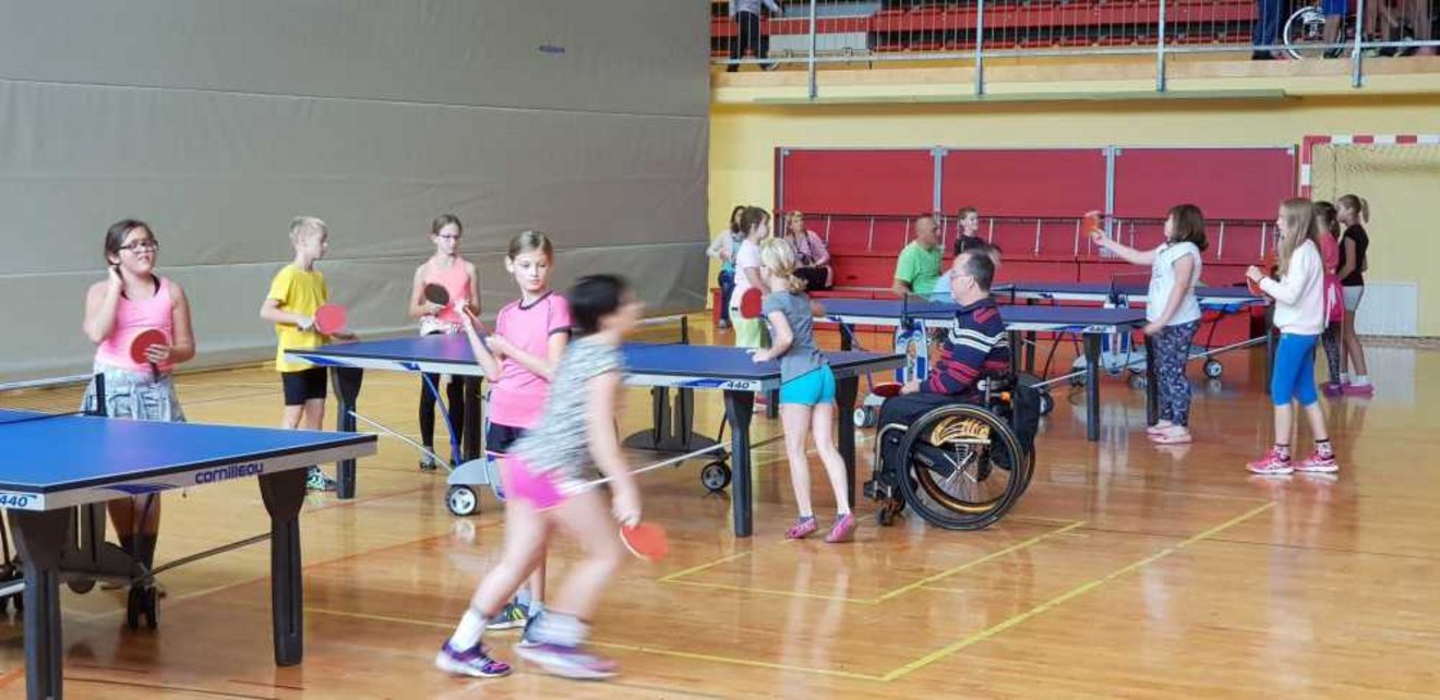 Namizni tenis sta predstavila Ljubiša in Davor. Učenci so bili zelo navdušeni tako, da so se kar pomerili v igri z našima odličnima igralcema. Navdušeni pa so bili tudi ob slikanju našega slikarja Željka, ki zaradi težje gibalne oviranosti, slika z usti.