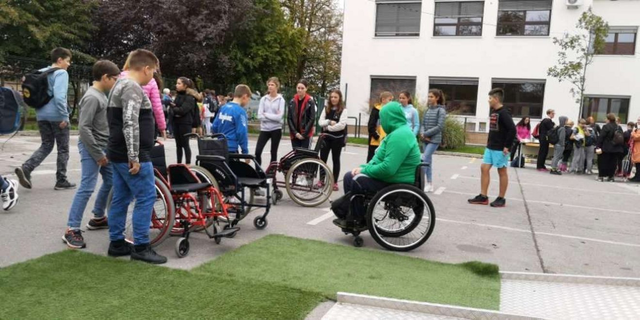 Pripeljali smo tudi poligon na katerem so učenci lahko praktično spoznali vožnjo z invalidskim vozičkom in premagovanje najpogostejše arhitekture ovire, s katerim se srečujemo vsak dan. Ogledalo so si lahko tudi osebno vozilo, prilagojeno za vožnjo na ročno upravljanje, ter spoznali osebni zgodbi Slavka Krajnca in Roka Bratovža. Opozorila sta jih na različne nevarnosti na katere morajo biti pozorni, da se jim ne bi kaj podobnega pripetilo. Najbolj pogosti vzroki za nastanek paraplegije in tetraplegije so še vedno prometne nesreče, pri skokih v vodo na glavo pa vedno pride do poškodbe hrbtenjače v vratnem delu, kar pripelje do tetraplegije, ki je huda in resna poškodba. Opozorila sta še na razne padce z dreves in na nevarnosti, ki pretijo pri prihajajočih zimskih radostih.