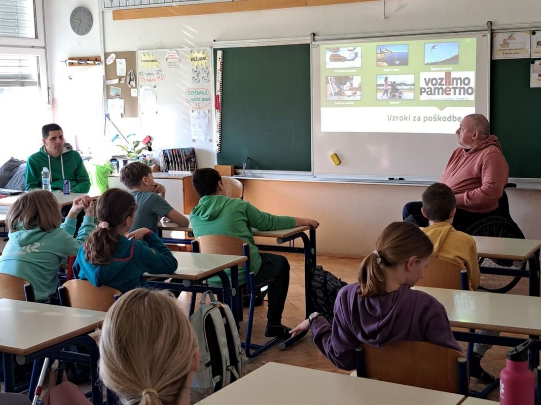 Član društva Žiga Bajde vsako leto obišče učence osnovne šole 27. junij v Kamniku in jim predstavi življenje na invalidskem vozičku.