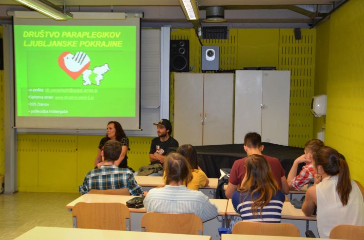 Tokrat smo jim pripravili pet delavnic; poslanstvo društva so s projekcijo fotografij predstavili Mirjam, Mojca in Nino. Dijake so opozorili na številne vzroke, ki so botrovali naši invalidnosti oz. poškodbi hrbtenjače. To so prometne nesreče, razni padci in druge nesreče. Pred poletjem pa so jih še posebej opozorili na skoke v vodo pri katerih si kopalci poškodujejo hrbtenjačo v vratnem delu in postanejo najtežje gibalno ovirani tetraplegiki.