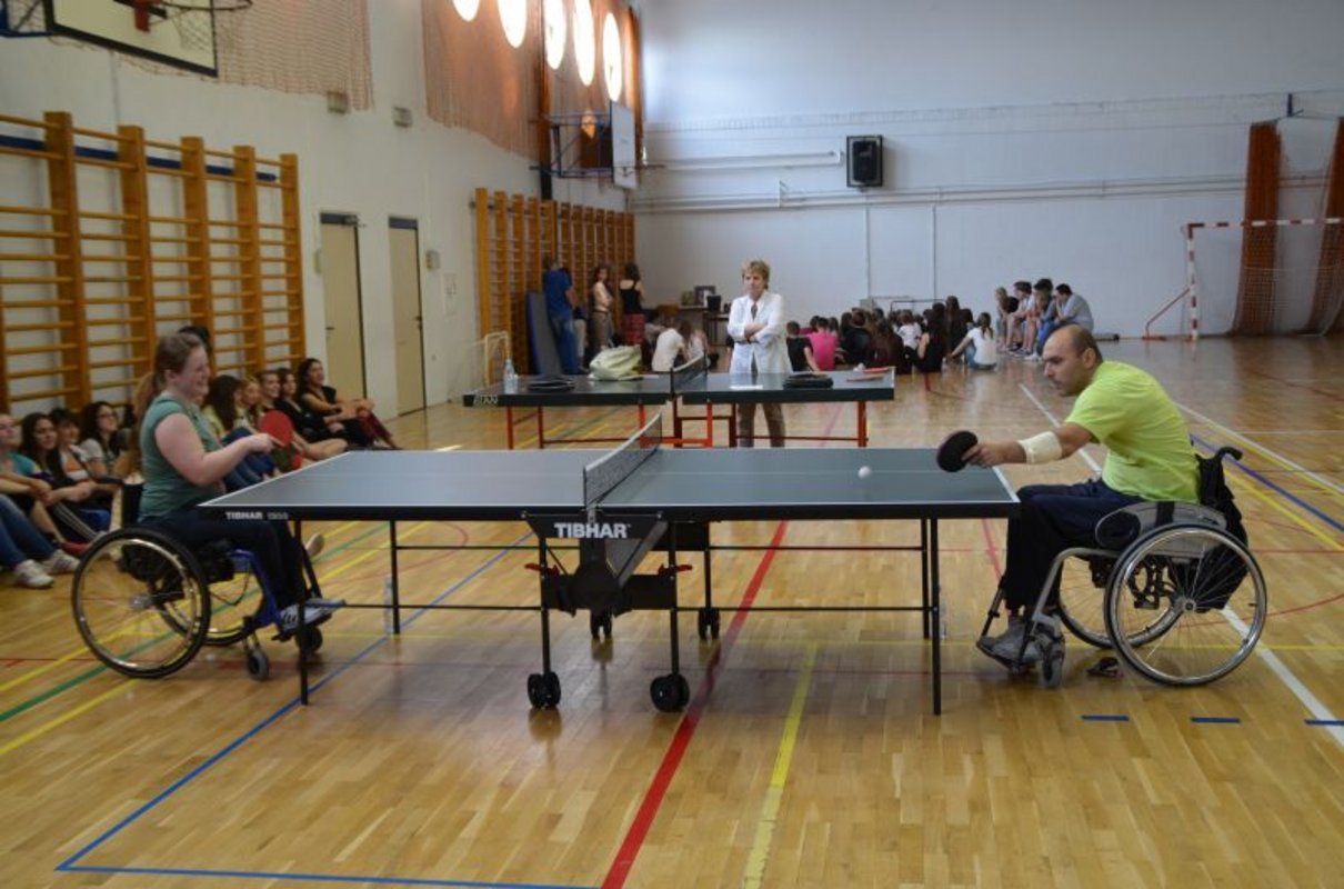 Barbara in Ljubiša sta predstavila igranje namiznega tenisa na vozičku, Barbara Šamperl in Klemen Pirman pa ples na invalidskem vozičku. Veliko občudovanja je na slikarski delavnici vzbudil Željko s predstavitvijo slikanja z usti, dijaki pa so se soočili tudi s premagovanjem arhitekturnih ovir. Vendar pa smo tokrat pri dijakih čutili nekakšno zadržanost. Niso veliko spraševali, pa tudi na invalidski voziček se je usedlo le nekaj.